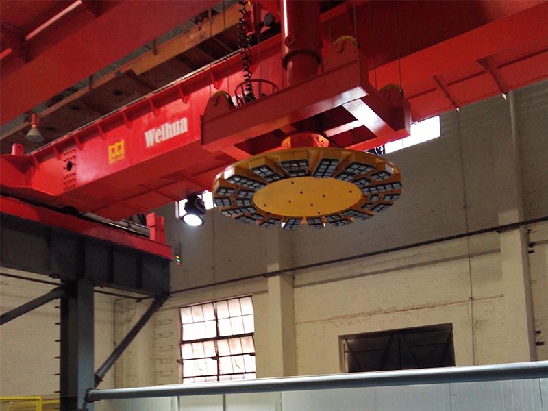 4.起重機(jī)可自動(dòng)加裝吊具、自動(dòng)裝配硅鋼片存儲(chǔ)架等,真正實(shí)現(xiàn)起重機(jī)無人值守、全自動(dòng)搬運(yùn)功能。